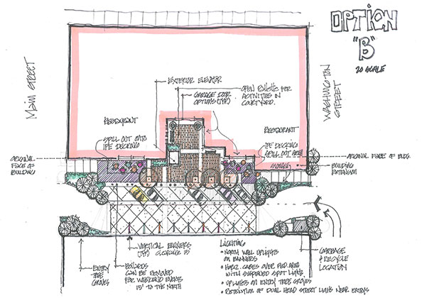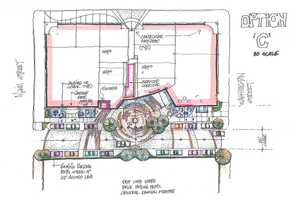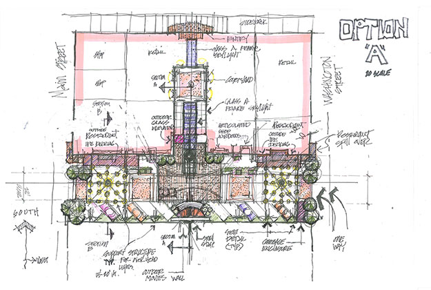 This project lead by LSW Architects, is in the schematic masterplan phase. Its emphasis was to bring new organizational structure to several building structures with historical significance and as well as the alley way/parking area and streetscape. ZLA was directed to focus on the courtyard, alley way parking area and streetscape improvements. An in depth study was provided to the owner on the functionality of the building templates and outdoor masterplan.