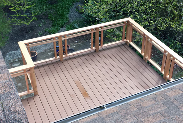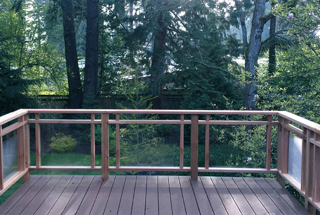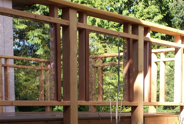 New design features included: a scaled down version of the existing, a transparent style railing with the incorporation of a western red cedar frame and Plexiglas infill. The owner’s preference for decking was a Trex surface with minimal maintenance.
