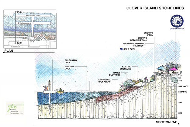 ZLA is working with John Fetterolf Engineering Design Group on the Design Development and final phases of Clover Island.