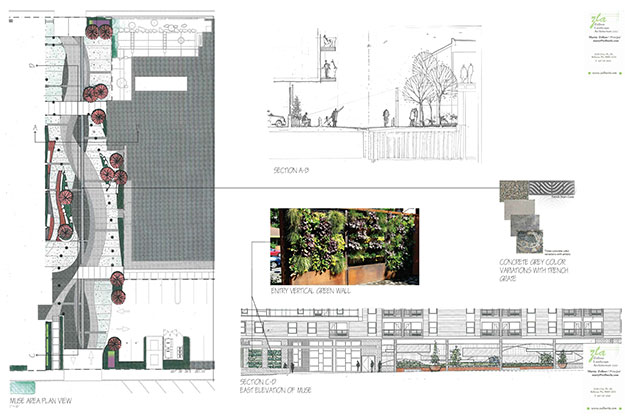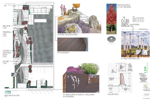 LSW Architects (prime) design team  included  ZLA as the landscape architectural design disipline with involvement on the site design layout of   the alley way ‘muse’ , the design of the upper courtyard and streetscape. Landscape architectural site design features included arbors, pedestal deck pavers, muse lighting, benches, bollards, hardscape design, entry features, and plant selection.