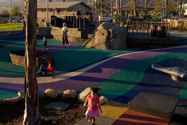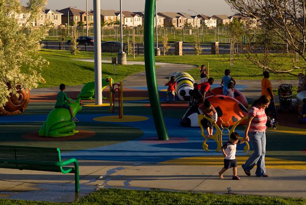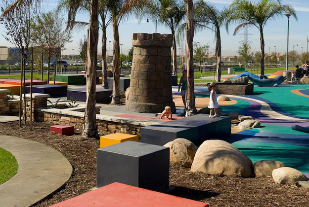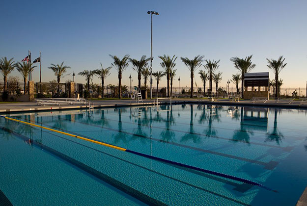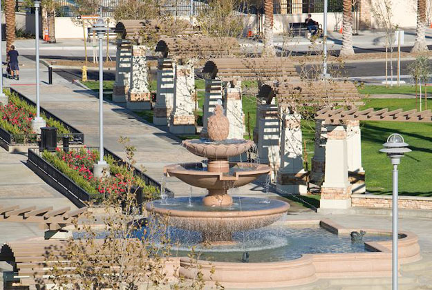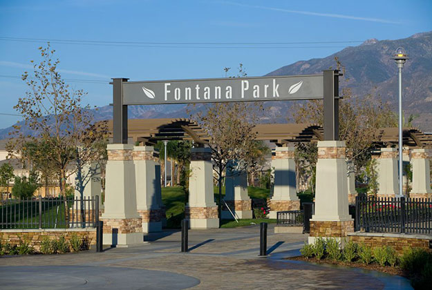 Fontana Park is a 38 acre new community park that features an open play ball field, formal and informal open space, a community center, plazas and courtyards, a skateboard park, promenade and Spanish fountain, roller hockey structure, aquatic center and experiential play zones for children of multiple ages. The features are tied together with a hierarchy of major promenades, major and minor sidewalks.