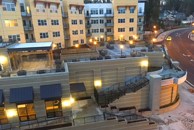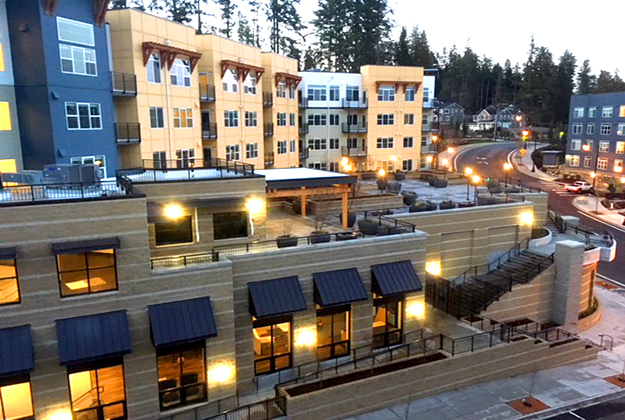 It includes 147 apartment units 249 Parking stalls, two levels of structured parking with a total square footage of 233,085 sf. The building is 6 stories. A major open space plaza of 4,000 square feet occurs on the third level which overlooks the Village at Beardslee Crossing.