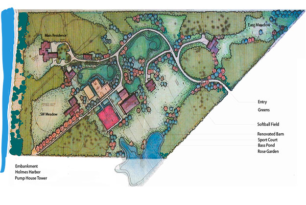 The design intent focused on renovation of existing structures and landscape without compromising the ‘island farm character’ and the natural site beauty. Large established Western Red Cedars and Douglas Fir groves are randomly placed around the site.