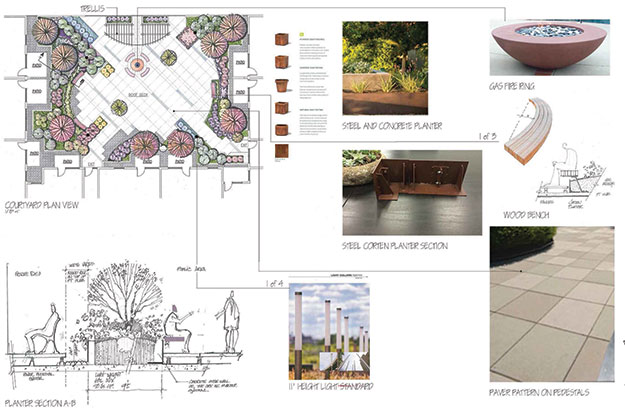LSW Architects (prime) design team included ZLA as the landscape architectural design disipline with involvement on the site design layout of the alley way ‘muse’ , the design of the upper courtyard and streetscape. Landscape architectural site design features included arbors, pedestal deck pavers, muse lighting, benches, bollards, hardscape design, entry features, and plant selection.