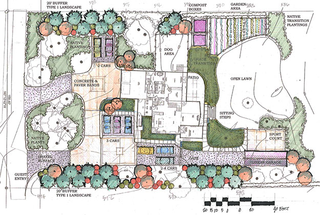 ZLA is working with the design team to develop a site plan that ( includes architect, arborist and owner) modifying the parking, driveways, open space, sidewalk / walkways, landscape buffers and recreational site features.