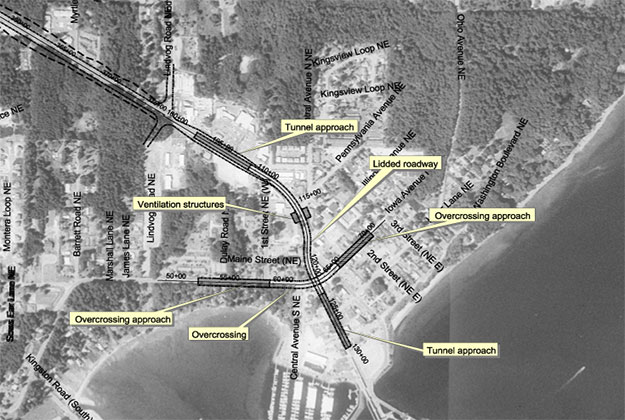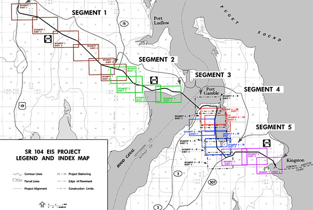 The project was one of three pilot projects selected by WSDOT and FHWA to utilize combined project planning and permitting processes with the NEPA. The corridor was divided into five segments with four or five alternatives within each segment. The length of the corridor study was between mile post .2 and the Kingston Ferry Terminal mile post 24.4