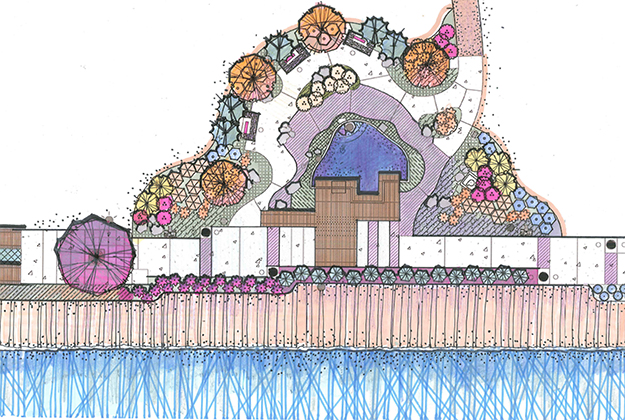 The sidewalk/boardwalk improvements provide public access to the entire south side of the island overlooking the marina harbor. Completed in 2017, it includes a seating area, bronze sculptures, interpretive signage, planting, night lighting and stonework adjacent to a waterbody feature.