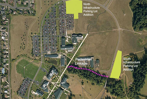 Completed design development and final construction documents for the infra-structure expansion of the campus. The scope included several parking lots, rain gardens, pedestrian linkage along a creek riparian corridor within the heart of the campus. Design elements included emergency call centers, benches, bollards, lighting, a concrete step system, landscape and irrigation. Special planting mitigate measures for the pedestrian linkage were implemented.